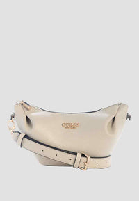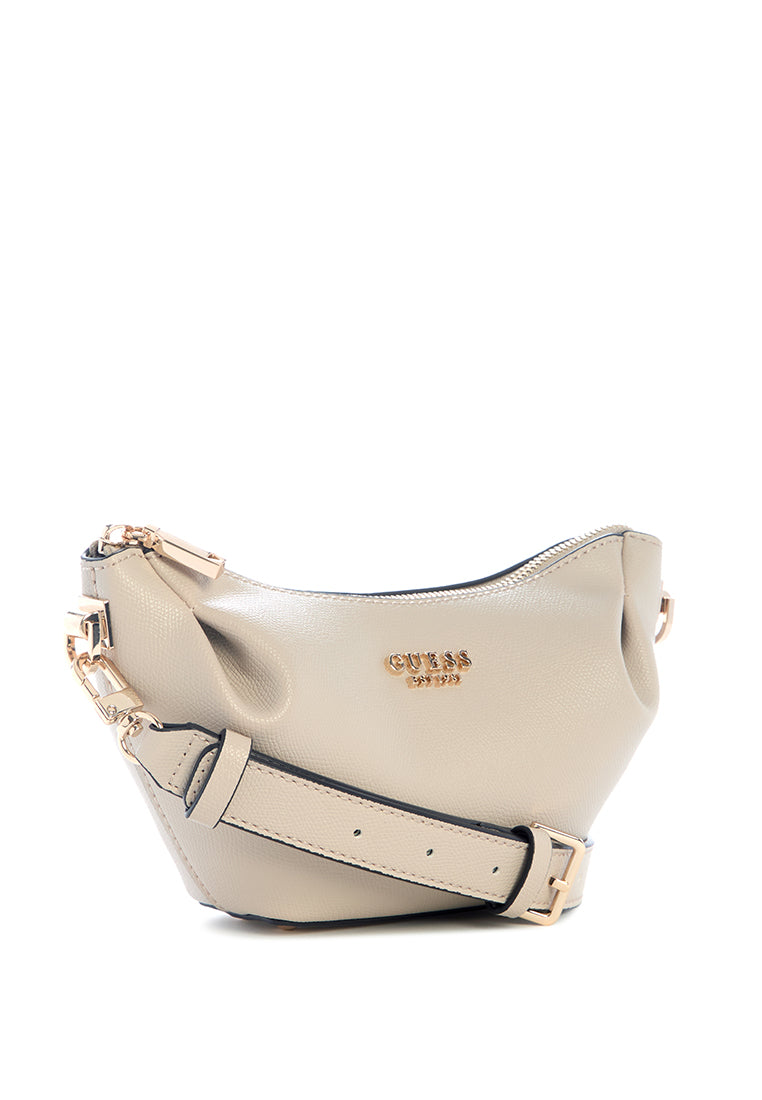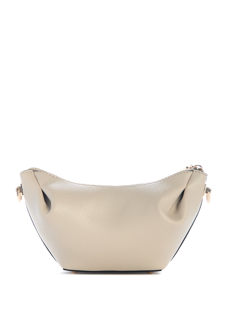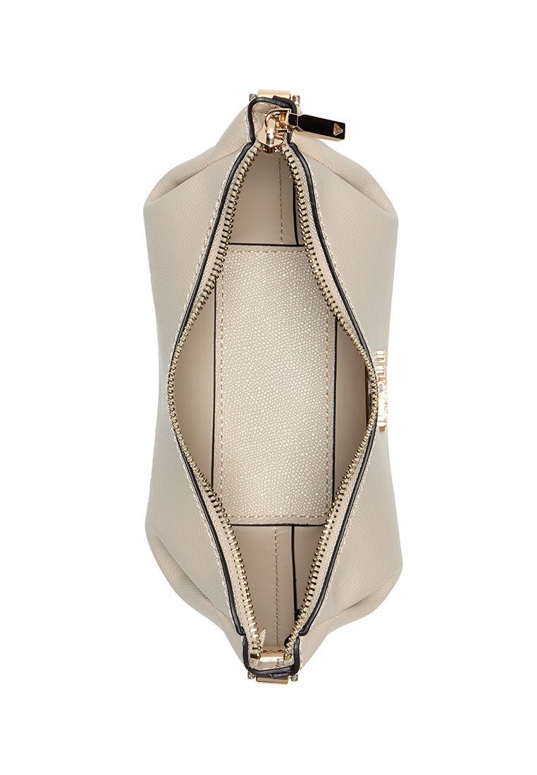 ● Faux-leather shoulder bag ● Pleated design ● Shiny pale gold-tone hardware with front logo emblem ● Organized interior with lining ● Zip-top closure ● Removable shoulder strap ● 10.25""W x 6""H x 3.5""D"