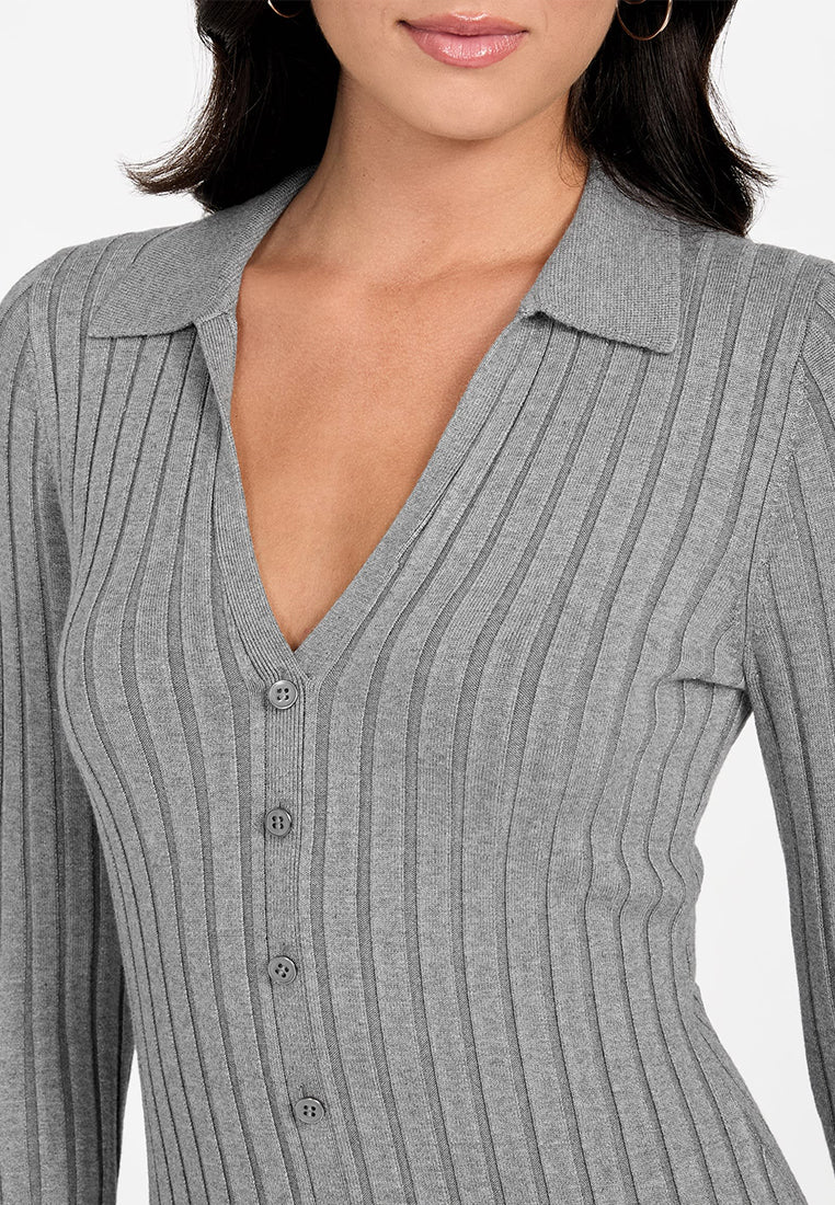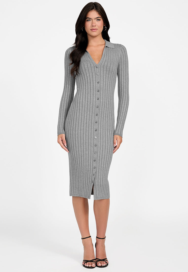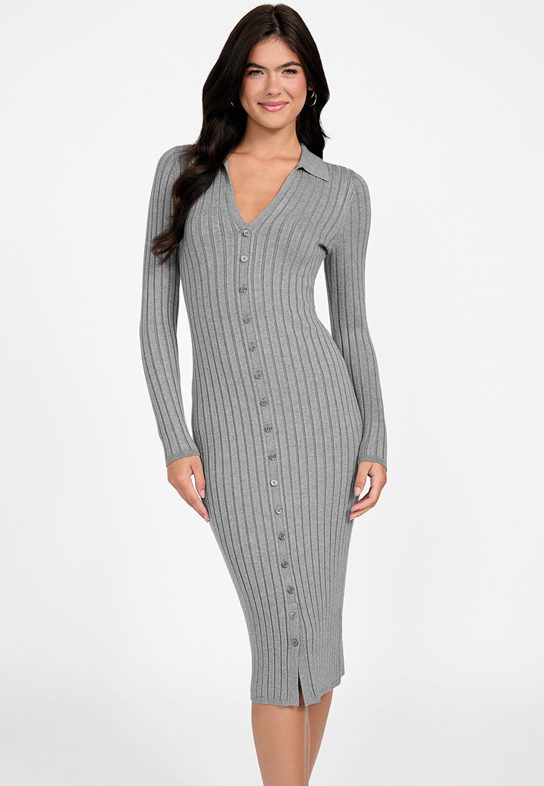 Long Sleeves V Neck Rib Miranda Sweater Dress