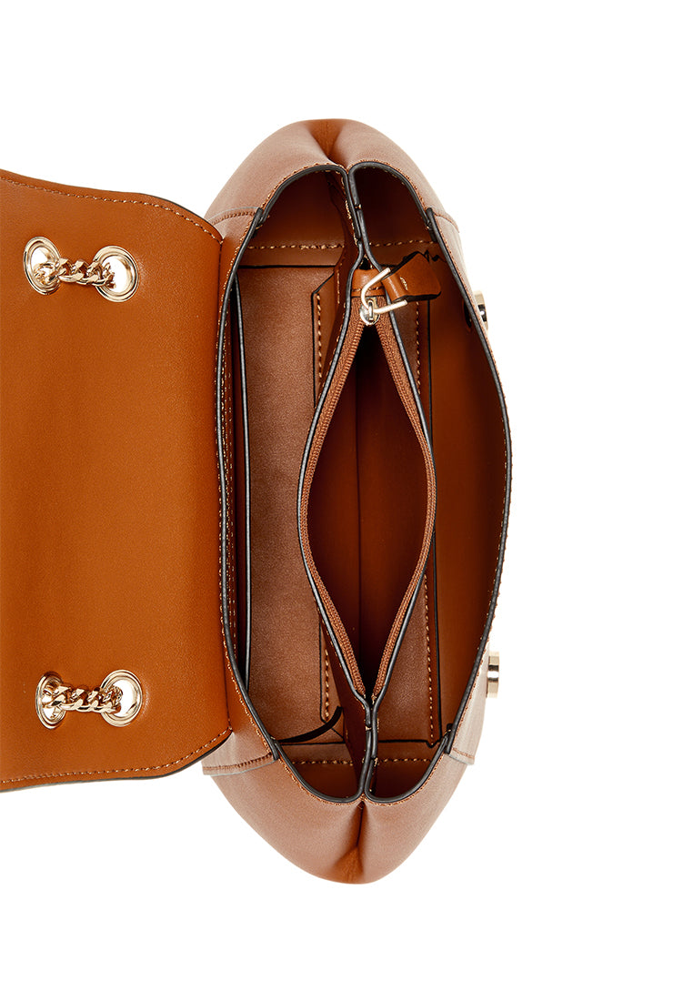 1 slip pocket and top zip pocket Shiny gold hardware 12.25 x 4 x 6.25